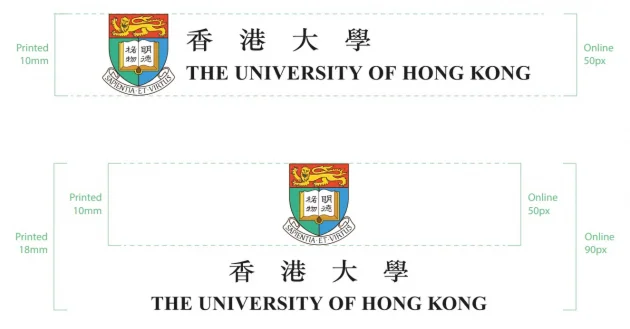 The University's Visual Identity, comprising the HKU Shield and the Wordmark, should be displayed with the minimum size to ensure clear display of the University brand. The minimum size of the HKU Shield is 10mm in vertical height for printed materials and 50 pixels for online use.